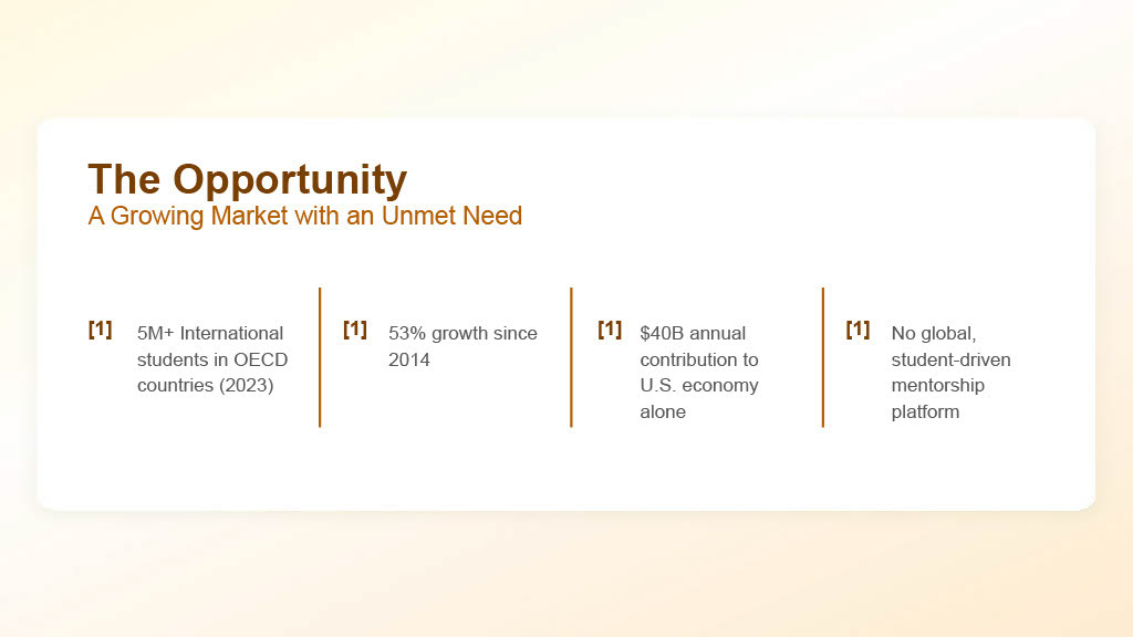 The final result was a grounded MVP concept and a cohesive pitch deck positioning Mento as a scalable, student-centered ecosystem for international student success. The strategic foundation we built sets the stage for future pilots and institutional partnerships.