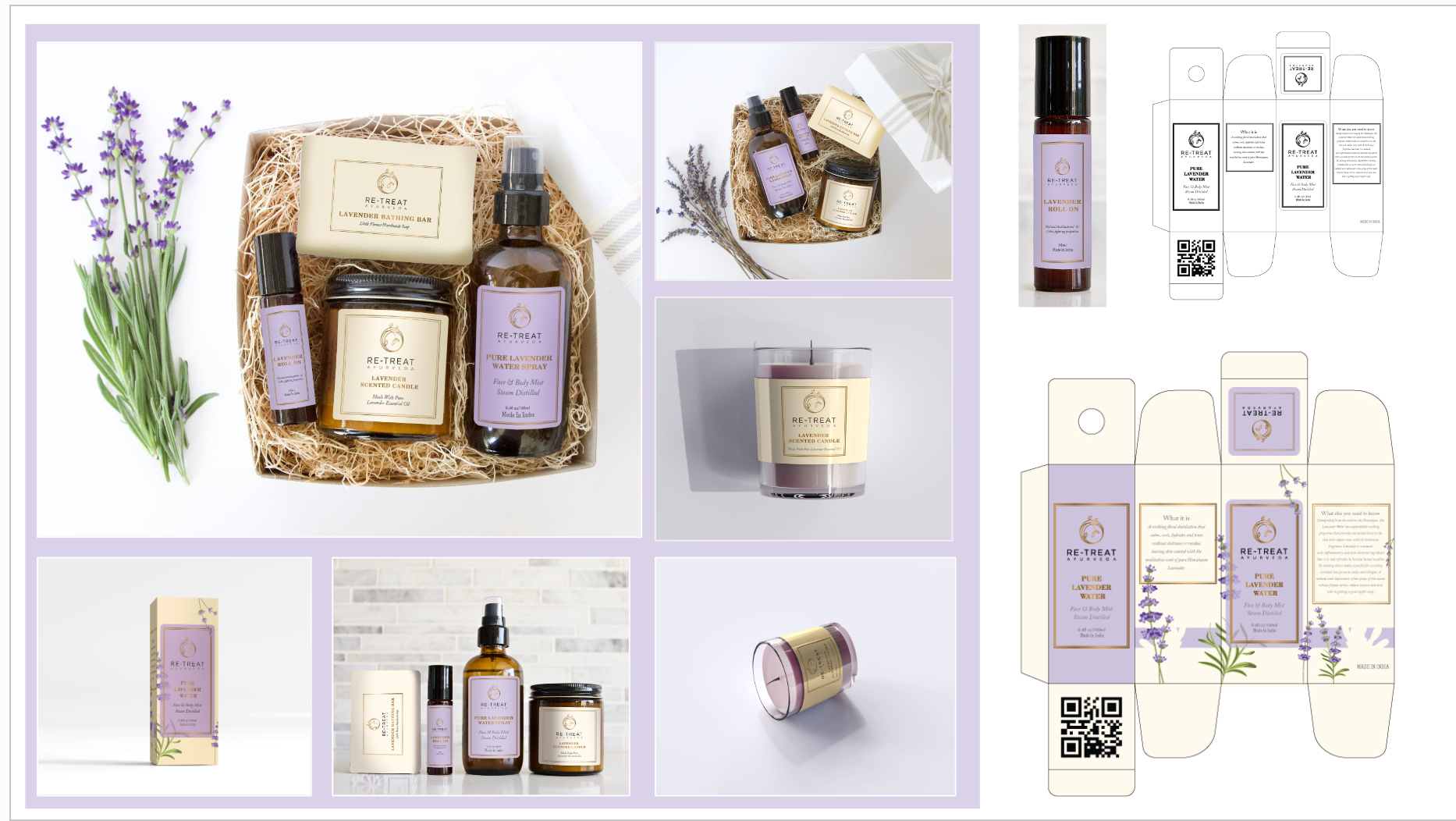 RE-TREAT Ayurveda is a fictional wellness brand I built entirely from scratch, as part of a self-directed installation exploring Ayurvedic healing and herbal medicine. I designed the brand identity, product concepts, packaging, and store layout—all to simulate a fully immersive retail experience.